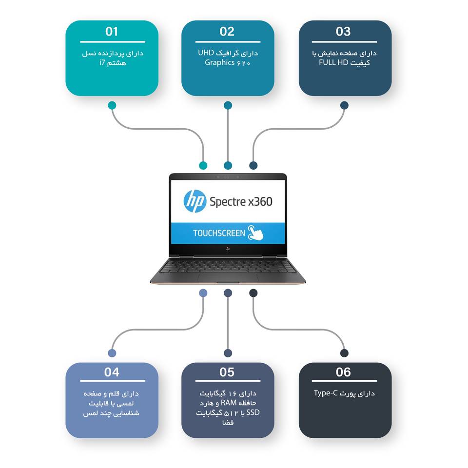 مشخصات فنی HP Spectre X360 13T AE000 - D - 13 inch Laptop