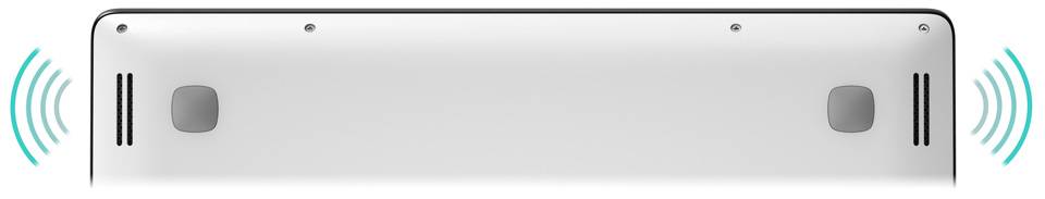 دو بلندگوی استریو که در زیر دستگاه قرار دارند، به شکل ناباورانه‌ای صدای واضح و خوبی تولید می‌کنند. البته شاید میزان تولید صدا زیاد نباشد اما کیفیت آن رضایت کاربر را جلب می‌کند. صدای تولیدی دستگاه برای یک اتاق کوچک یا تماشای یک‌نفره فیلم و گوش کردن به موسیقی کافی است، اما اگر نیاز به صدای بلندتری دارید، بهتر است از هدفون یا بلندگوهای جداگانه استفاده کنید.