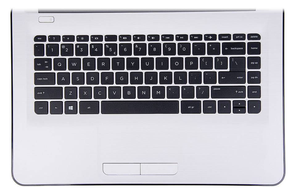 کلیدهای کیبورد لپ‌تاپ، ابعادی معادل 15×15 میلی‌متر دارند و چینش کیبورد با استاندارد QWERTY است. جزیره‌ای بودن آن کمک زیادی به کمتر شدن میزان خطا در هنگام تایپ می‌کند. کیفیت ساخت کلیدها بسیار بالاست و وقتی آن‌ها را لمس کنید، از مرغوبیتش لذت خواهید برد. تنها ایرادی که به کیبورد دستگاه می‌توان تا حدودی وارد کرد، کوچک بودن کلیدهای جهت بالا و پایین است؛ که البته می‌توان گفت فدای طراحی تروتمیز و چینش کیبورد شده است. کلیدها مشکی‌رنگ هستند و حروف حک شده روی آن‌ها به ‌رنگ سفید است. درمجموع کار کردن با کیبورد لپ‌تاپ Pavilion 14 لذت‌بخش است. تاچ پد هم تقریبا بزرگ و مناسب است. سطح آن با محل استراحت دست‌ها و اطراف کیبورد یکدست است و تنها می‌توان با طراحی ظریفی که HP انجام داده، هاله‌ای از خطوط جداکننده را تشخیص دهید. با‌وجود‌این حساسیت سطح تاچ پد بالاست و به‌راحتی می‌توانید با استفاده از فرمان‌های چندلمسی با آن کار کنید. کلیدهای تاچ پد که در پایین آن قرار دارند، کاملا جدا از هم هستند و وقتی آن‌ها را فشار می‌دهید می‌توانید صدای کلیکش را بشنوید؛ همیشه شنیدن صدای کلیدها حس خوبی را به کاربر منتقل می‌کند.
