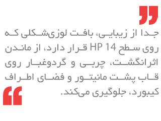 در سمت دیگر، صفحهنمایش HP 14 چندان مناسب تماشای فیلم نیست و روکش براقش هم، محدودیتهای خاص خودش را دارد. به علاوه، بهتر است که همیشه شارژر دستگاه را همراهتان نگه دارید.