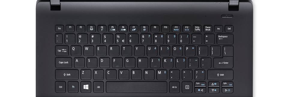 با‌توجه به ابعاد اسپایر ES1، در این لپ‌تاپ از کیبورد کامل استفاده نشده و فضای لازم برای قرارگیری نام‌پد در این مدل وجود نداشته است. کلید‌های لبه‌دار باعث شده‌اند تا تایپ‌کردن با آن‌ها ساده باشد، همچنین مقدار فشرده‌شدن و فاصله‌ی آن‌ها تا پلاستیک زیر کیبورد کاملا مناسب است.