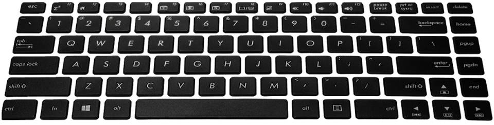 با وجود ابعاد لپتاپ و صفحهنمایش ۱۴ اینچ، ایسوس از کیبورد جزیرهای کامل و با اندازه استاندارد در این دستگاه استفاده کرده است تا تایپکردن با آن راحت باشد. فاصلهی بین دکمهها ۱.۶ میلیمتر است که فاصلهی مناسبی است و احتمال اشتباه تایپی را به حداقل میرساند.