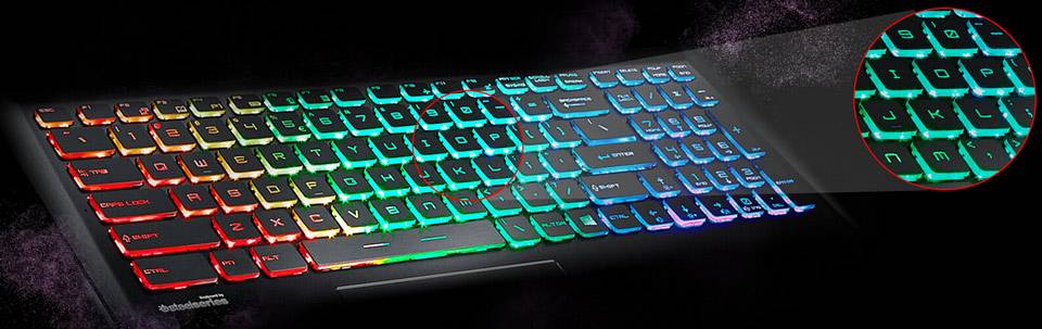 نیازی نیست به این موضوع اشاره کنیم که کیبورد تمام لپتاپهای مخصوص بازی MSI، توسط شرکت SteelSeries ساخته میشوند؛ شرکت معروفی که به طور تخصصی در زمینهی تولید لوازم جانبی کامپیوترهای شخصی فعالیت میکند. چند سالی است که این همکاری ادامه دارد و این اتفاقی خوشایند برای کاربران این لپتاپهاست. کیبورد جزیرهای GE63 7RD، نور پسزمینهی قابل تنظیم در سه بخش با رنگهای دلخواه دارد و چیدمان کلیدها برای راحتی بیشتر گیمرها تغییر کرده است. برای مثال کلید «ویندوز» از سمت چپ کیبورد حذف شده تا کاربر به طور تصادفی آن را فشار نداده و از بازی خارج نشود. مورد جدیدی که در کیبورد GE63 7RD وجود دارد، نرمافزار SteelSeries Engine 3 است؛ نرمافزاری که کنترل کامل کیبورد (کارکرد کلیدها، نوع و رنگ نور پسزمینه و...) این لپتاپ را در اختیار کاربر قرار میدهد. بهعلاوه، این نرمافزار به جز کیبورد لپتاپ، سایر گجتهای SteelSeries شما را هم کنترل خواهد کرد.