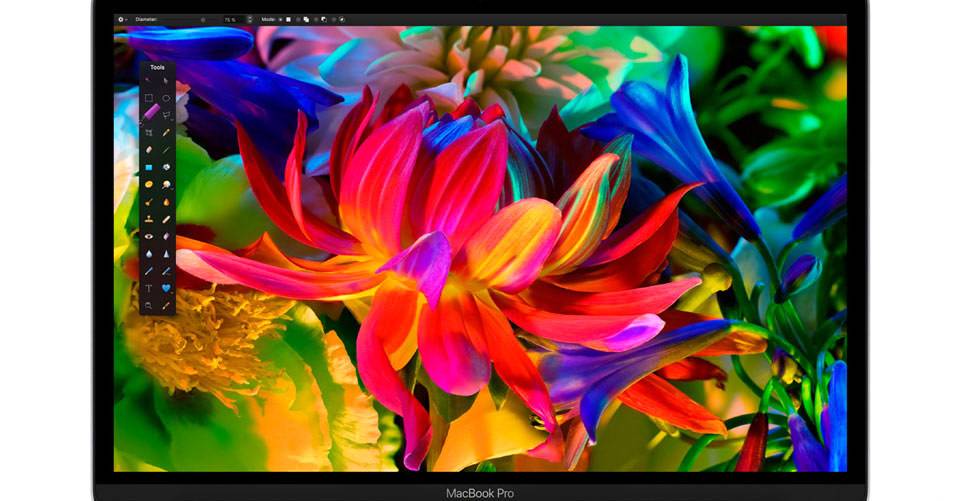 صفحهنمایش مکبوک پرو مثل مدلهای قبلی که چندسالی است با نام انحصاری رتینا در لپتاپهای اپل دیده میشود، در مدلهای ۱۳اینچی رزولوشن ۲۵۶۰x۱۶۰۰ پیکسل و در مدلهای ۱۵اینچی رزولوشن ۲۸۸۰x۱۸۰۰ پیکسل دارد. اما این صفحهنمایش با مدلهای پیشین تفاوتهای جذابی دارد. اول اینکه روشنایی آن تا ۶۷درصد افزایش داشته و این یعنی ۵۰۰ نیت (nits). این صفحهنمایش اولین نمایشگر در مکبوکهاست که از نرخ نمایش رنگهای بیشتر پشتیبانی میکند. رتینای جدید میتواند رنگهای سبز و قرمز را در مقایسه به مدلهای قدیمی، زندهتر و شفافتر نشان دهد. کیفیت تصویر و وضوح رنگها، این نمایشگر را برای طراحیهای گرافیکی، ویرایش فیلم و عکس کاملا مناسب میکند. طراحان اپل، با ساخت این نمایشگر فوقالعاده، با تراکم پیکسلی بالا، تمامی رقیبان خود را به چالش کشیدهاند.