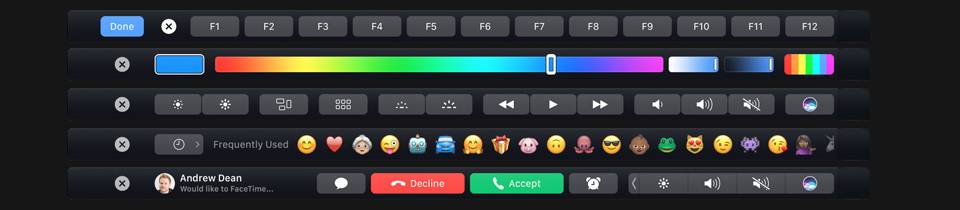 با معرفی مک‌بوک پروی جدید، جذاب‌ترین قسمت آن که حتی شایعه‌‌اش دل طرفداران را برده بود رونمایی شد. تاچ‌بار، صفحه‌نمایش با پنل اولد و روکش شیشه‌ای، قسمتی است که می‌توان ساعت‌ها درباره‌ی آن صحبت کرد و از کارکردن با آن لذت برد. شاید برای‌تان جالب باشد بدانید، این تاچ‌بار چیست و دقیقا چه کاری می‌کند. تاچ‌بار برای جایگزین‌ شدن کلید‌های میان‌بر طراحی شده است. با تاچ‌بار می‌توانید راحت‌تر به امکانات و ویژگی‌های خاص مک‌بوک و برنامه‌هایتان دسترسی داشته باشید که در حالت عادی و بدون وجود تاچ‌بار شاید پیداکردن و کارکردن با آن‌ها سخت بود. بعضی از بهترین کاربردهای تاچ‌باردر برنامه‌های اختصاصی یا جانبی هستند برای مثال می‌توان به موارد زیر اشاره کرد.