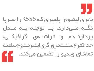 وضعیت نمایشگر در مدلهای مختلف K556 کاملا متفاوت است. با توجه به هزینهای که پرداخت میکنید، میتوانید مدلهایی با نمایشگر براق HD تا مدلهایی با نمایشگرهای مات Full HD را تهیه کنید. قطعا اگر در کارهای روزمرهتان، نیاز به دقت بالا دارید (مثلا با متون زیاد کار میکنید) به تهیهی مدلهایی با نمایشگر Full HD فکر کنید؛ ولی اگر استفادهی خاصی ندارید و میخواهید کمترین هزینه را بپردازید، سراغ نمایشگرهای HD بروید. مورد دیگری که باید مدنظر داشته باشید، این است که نمایشگرهایی که دارای روکش مات هستند، انعکاس تصویر کمتر و عملکرد کلی بهتری دارند. اما فارغ از اینکه کدام مدل را در نظر بگیریم، تمام مدلها، نمایشگرهایی میانرده و معمولی دارند. روشنایی، نسبت کنتراست و زوایای دید، همگی در سطح پایینی قرار دارند. کیفیت و غلظت رنگها هم تعریفی ندارد. اینطور میتوان جمعبندی کرد که گرافیستها و طراحان، جزو بازار هدف سری K556 نبودهاند.