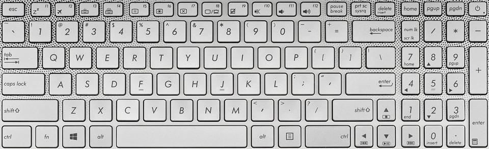 ایسوس N551 مجهز به یک کیبورد یک‌تکه، کامل و بزرگ‌شده که رنج کاملی از حروف تا کلیدهای عددی ماشین‌حساب هم در آن وجود دارند. اندازه‌ی بزرگ کلیدها و شکل قرارگیری آن‌ها به‌صورت جزیره‌ای به شما اجازه می‌دهد با دقت و سرعت بالایی تایپ کنید. هنگام فشردن کلید‌ها نرمی و بی‌صدایی آن‌ها توجه‌تان را جلب خواهد کرد. صدای تایپ کردن با این کیبورد به حدی کم است که حتی در محیط‌های کاملا ساکت مثل کتابخانه هم می‌توانید از این لپ‌تاپ استفاده کنید. کلیدهای این کیبورد نقره‌ای رنگ هستند و حروف روی آن‌ها به رنگ خاکستری حک‌شده‌اند، که ظاهر شیک و جذابی به این لپ‌تاپ داده‌اند. البته شاید برخی از کاربران ترجیح می‌دادند که کلیدهای این لپ‌تاپ مانند لپ‌تاپ‌های شرکت اپل مشکی‌رنگ باشند، اما ایسوس به‌منظور یکدست شدن شکل ظاهری این مدل از رنگ روشن استفاده کرده است. از دیگر خصوصیات کیبورد N551 وجود نور پس‌زمینه است که می‌توانید آن را در سه سطح از روشنایی، تنظیم کنید. تابش این نور سفیدرنگ از پشت حروف خاکستری‌رنگ، در تاریکی، جلوه زیبایی به لپ‌تاپ می‌دهد.