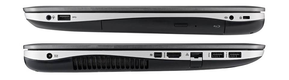 لپ‌تاپ N551 یک دستگاه مالتی‌مدیاست و مجهز شدندش به مجموعه‌ی کاملی از پورت‌ها و اتصالات، یک ضرورت برای آن محسوب می‌شود. ایسوس هم کاملا به این امر واقف بوده و گستره‌ی کاملی از پورت‌های کاربردی را برای این لپ‌تاپ در نظر گرفته است. روی لبه‌ی سمت راست جک ورودی و خروجی صدا، یک پورت USB 3.0، پورت مخصوص اتصال ساب‌ووفر SonicMaster، محل قفل Kensington و درب درایو نوری مشاهده می‌شوند. لبه سمت چپ هم محل قرارگیری پورت اتصال‌ شارژر، دریچه خروجی هوای گرم، درگاه mini-DisplayPort، پورت HDMI، پورت شبکه «اترنت» (LAN) و دو پورت USB3.0 است. با قرار گرفتن پورت‌های USB3.0 در هر دو لبه‌ی لپ‌تاپ هیچ محدودیتی در اتصال ابزارهای جانبی که از این پورت استفاده می‌کنند، نخواهید داشت. اسلات کارت حافظه هم در سمت چپ لبه‌ی جلویی قرار دارد، که علاوه بر پشتیبانی از SDCard توانایی خواندن کارت‌های حافظه CF را هم دارد که معمولا در دوربین‌های دیجیتالی استفاده می‌شوند. روی همین لبه، زیر تاچ پد چندLED کوچک هم وجود دارد که نشانگر وضعیت کلی سیستم هستند. علاوه بر این پورت‌ها، N551 مجهز به Wi-Fi از نوع n و بلوتوث است.