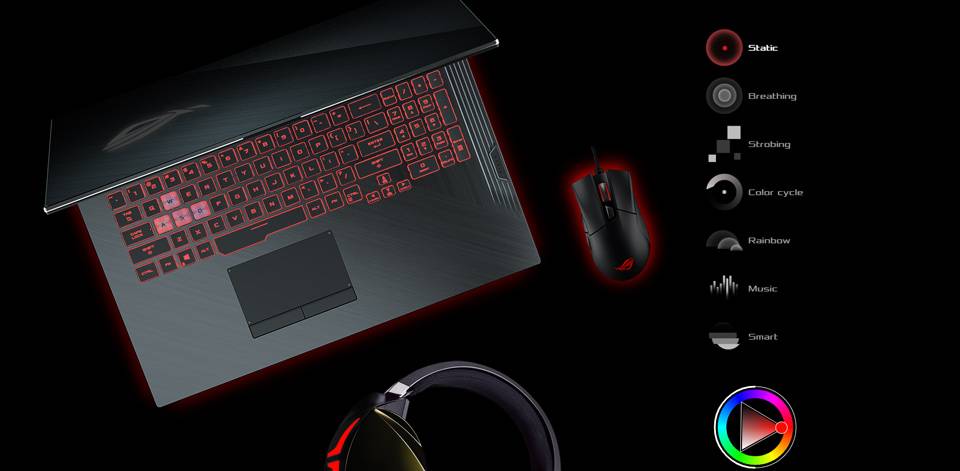 کلیدهای Strix ROG G531GT دارای لبههای شفاف بوده و زیبایی آن را دوچندان کردهاست. همچنین شما قادر به نصب یک لایتبار اختیاری در اطراف شاسی هستید.