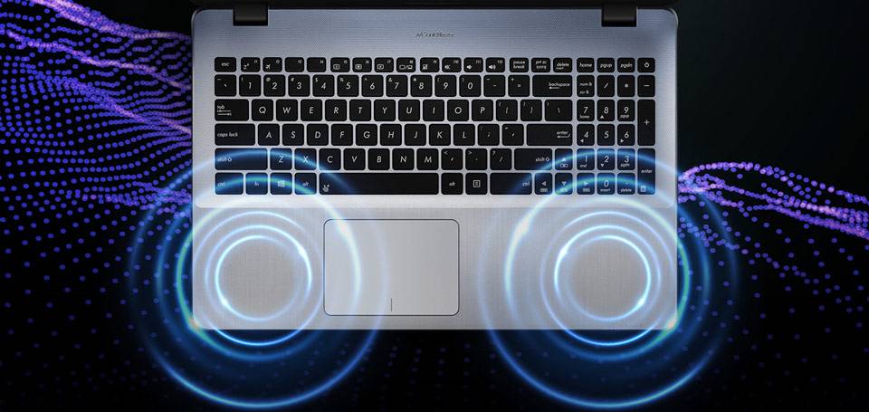 سیستم صوتی اکثر لپ‌تاپ‌های پایین، میان و گاها بالارده‌ی ایسوس از فناوری SonicMaster بهره بردند. ترکیبی از نرم‌افزار و سخت‌افزار که با هدف پخش بهترین صدا به خدمت گرفته شده‌اند. این صدا شفاف است و بلندی نسبتا خوبی دارد و می‌تواند یک اتاق متوسط و نسبتا بزرگ را پوشش دهد. البته باید این نکته را هم یادآور شد که اگر قصد دارید بازی کنید، موزیک گوش دهید یا فیلم ببینید به شما پیشنهاد می‌شود برای بهترین کیفیت صدا از یک هدفون مناسب استفاده کنید. بلندگوهای ایسوس برای برطرف‌کردن نیازهای روزمره کافی و مناسب است و شما را ناامید نخواهد کرد. نرم‌افزار Audio Wizard دارای پنج حالت بازی، فیلم، موزیک، ضبط صدا و مکالمه است که با توجه به کاربری و نیازتان می‌توانید یکی از این حالت‌ها را انتخاب کنید.