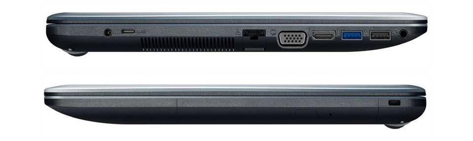 ایسوس X541 از نظر تنوع درگاهها بسیار کامل است و بهراحتی رضایت کاربرش را جلب میکند؛ در این لپتاپ 15 اینچی، یک درگاه USB 3.0 و یک درگاه USB 2.0 وجود دارد. به علاوه، درایو نوری دارد و کارتخوان هم در آن تعبیه شده است. درگاه شبکهی Ethernet گیگابیتی و خروجیهای تصویر VGA و HDMI هم، از دیگر درگاههای X541 هستند. قوت دیگر X541، وجود درگاه جدید و کاربردی USB Type-C روی لبهی سمت چپ است که کمک میکند کاربران این لپتاپ، برای اتصال دستگاههای جدید به لپتاپشان، به مبدل نیاز نداشته باشند.