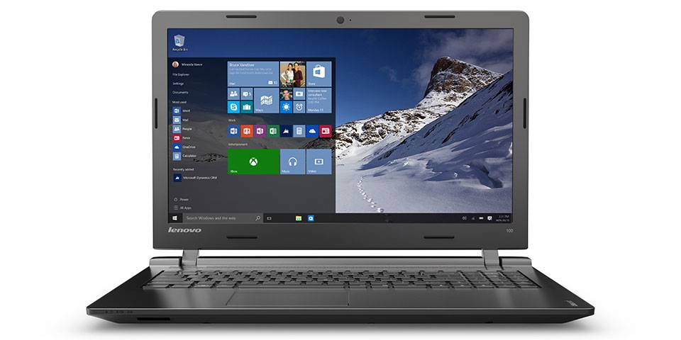 لپ‌تاپ‌های مدل «IdeaPad» شرکت «لنوو» از کیفیت بالایی برخوردارند و تاکنون سری‌های مختلفی از آن‌ها در اندازه‌های متفاوت صفحه‌نمایش طراحی و تولید شده‌اند. یکی از این سری‌ها، مدل 15.6 اینچی «IdeaPad 100» است که طراحی بدنه‌ی ساده و معمولی دارد و گزینه‌ای مناسب برای کاربری‌های روزمره در محیط‌های خانگی و اداری محسوب می‌شود. بدنه‌ی این لپ‌تاپ چه برای قسمت‌های داخلی و چه برای قسمت‌های خارجی کاملا از پلاستیک مشکی‌رنگ مات ساخته شده است. بدنه‌ی IdeaPad 100 حدودا 22.5 میلی‌متر ضخامت و 2.3 کیلوگرم وزن دارد که به استاندارد لپ‌تاپ‌های میان‌رده نزدیک است. صفحه‌نمایش 15.6 اینچی انتخاب‌شده برای این مدل پنل TFT و وضوح HD با روکش براق دارد که یک نمونه‌ی معمولی به‌شمار می‌رود. کیبورد جزیره‌ای کامل این محصول، تایپ‌کردن‌های طولانی را راحت‌تر کرده و با سرعت و دقت بیشتری می‌توان کار کرد؛ البته مقاومت کیبورد آنچنان بالا نیست و به‌خصوص در قسمت‌های میانی، با کمی فشار به سمت پایین خم می‌شود. تاچ‌پد هم از یک پد و یک کلید سرتاسری زیر پد تشکیل شده که از لحاظ ظاهری کمی بهتر از تاچ‌پدهای معمولی با دو کلید مجزاست. روی این لپ‌تاپ، شاهد پورت‌های زیادی نیستیم و این کمبود به‌خصوص درباره‌ی پورت‌های USB کاملا مشهود است که به دو عدد USB یکی از نسل 3 و یکی از نسل 2 محدود می‌شود؛ درحالی که اکثر لپ‌تاپ‌ها حداقل سه پورت USB دارند. بهتر است در انتخاب نوع و تعداد ابزارهای جانبی خود دقت کنید؛ چراکه برای مثال اتصال ماوس بلوتوث با دانگل، یکی از پورت‌ها را اشغال کرده و تنها یک پورت USB خالی خواهید داشت. از پورت  VGAهم خبری نیست و تصویر را تنها می‌توان از طریق یک پورت HDMI به مانیتورهای خارجی یا ویدئوپروژکتورها منتقل کرد. این کانفیگ از IdeaPad 100 به پردازنده‌ی مرکزی Core i5 5200U اینتل، پردازشگر گرافیکی Nvidia GeForce 920M با یک گیگابایت حافظه‌ی اختصاصی، 4 گیگابایت رم و 500 گیگابایت حافظه‌ی داخلی مجهز شده است که به‌خوبی از پس کارهای معمول روزمره برمی‌آیند؛ اما نباید اجرای روان بازی‌ها، نرم‌افزارهای گرافیکی و محاسباتی سنگین را از آن‌ها انتظار داشت. درمجموع این مدل از لپ‌تاپ IdeaPad 100 پانزده‌اینچی را می‌توان یک لپ‌تاپ اقتصادی از لحاظ قیمتی و کاربردی برای انجام امور سبک روزمره دانست.