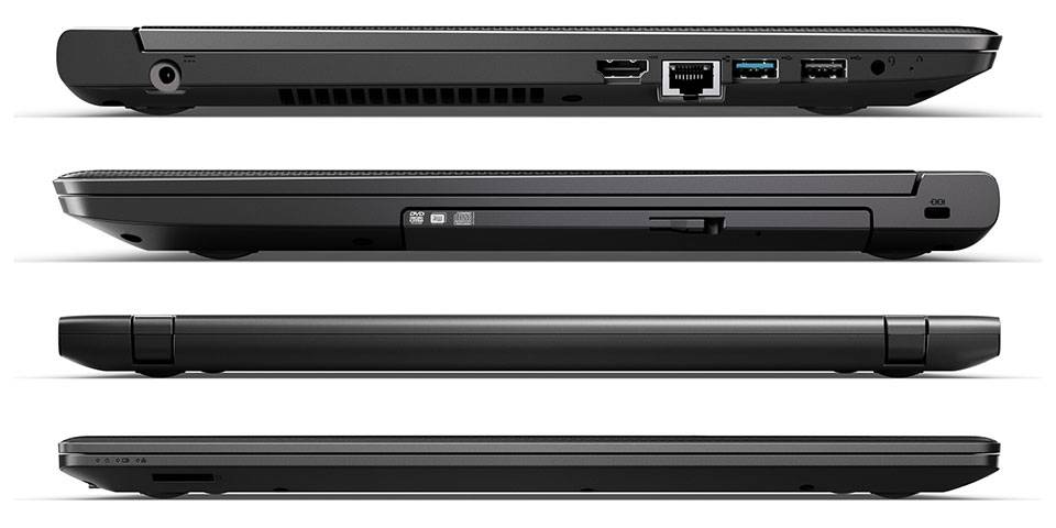 لپ‌تاپ‌های مدل  Ideapad«لنوو» از تنوع فراوانی برخوردارند و تاکنون سری‌های مختلفی از آن‌ها در اندازه‌های متفاوت صفحه‌نمایش طراحی و تولید شده‌اند. یکی از این سری‌ها مدل 15.6اینچی «Ideapad 100» است که طراحی بدنه‌ی آن ساده و معمولی است و یک گزینه‌ی مناسب برای کاربری‌های روزمره در محیط‌های خانگی و اداری محسوب می‌شود. بدنه‌ی این لپ‌تاپ چه برای قسمت‌های داخلی و چه برای قسمت‌های خارجی کاملا از پلاستیک مشکی‌رنگ مات ساخته شده است. بدنه‌ی Ideapad 100 حدودا 22.5 میلی‌متر ضخامت و 2.3 کیلوگرم وزن دارد که به استاندارد لپ‌تاپ‌های میان‌رده نزدیک است. صفحه‌نمایش 15.6اینچی انتخاب‌شده برای این مدل، پنل TFT و وضوح HD با روکش براق دارد که یک نمونه‌ی معمولی به‌شمار می‌رود. کیبورد جزیره‌ای کامل این محصول تایپ‌کردن‌های طولانی را راحت‌تر کرده و با سرعت و دقت بیشتری می‌توان کار کرد؛ البته مقاومت کیبورد خیلی زیاد نیست و به‌خصوص در قسمت‌های میانی، با کمی فشار به سمت پایین خم می‌شود. تاچ‌پد هم از یک پد و یک کلید سرتاسری زیر پد تشکیل شده که از لحاظ ظاهری کمی بهتر از تاچ‌پدهای معمولی با دو کلید مجزاست. روی این لپ‌تاپ شاهد پورت‌های زیادی نیستیم و این کمبود به‌خصوص درباره‌ی پورت‌های USB کاملا مشهود است که به دو عدد USB یکی از نسل 3 و یکی از نسل 2 محدود می‌شود. درحالی‌که اکثر لپ‌تاپ‌ها حداقل سه پورت USB دارند؛ پس بهتر است در انتخاب نوع و تعداد ابزارهای جانبی خود دقت کنید؛ چراکه برای مثال، اتصال ماوس بلوتوث با دانگل، یکی از پورت‌ها را اشغال کرده و تنها یک پورت USB خالی خواهید داشت. خبری هم از پورت VGA نیست و تصویر را فقط از طریق یک پورت HDMI می‌‌توان به مانیتورهای خارجی یا ویدئو پروژکتورها منتقل کرد. این کانفیگ از IdeaPad 100 به پردازنده‌ی مرکزی Core i3 5005U اینتل، پردازشگر گرافیکی Nvidia GeForce 920M با دو گیگابایت حافظه‌ی اختصاصی، 4 گیگابایت رم و یک ترابایت حافظه‌ی داخلی مجهز شده است که به‌خوبی از پس کارهای معمول روزمره برمی‌آیند؛ اما نباید انتظار اجرای روان بازی‌ها، نرم‌افزارهای گرافیکی و محاسباتی سنگین را از آن‌ها داشته باشید. درمجموع این مدل از لپ‌تاپ Ideapad 100 پانزده اینچی را می‌توان یک لپ‌تاپ اقتصادی از لحاظ قیمتی و کاربردی برای انجام امور سبک روزمره دانست.