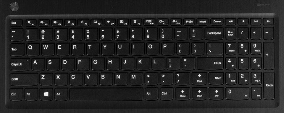 لنوو این لپتاپ را به کیبوردی جزیرهای مجهز کرده است که کلیدهای آن به شکل مربعی هستند و سطح نسبتا تختی دارند؛ البته یک انحنای خیلی خفیف روی کلیدها احساس میشود که هنگام تایپکردن حس بهتری ایجاد میکند. برای فشردن کلیدها به نیروی کمی نیاز است و بهراحتی میتوانید یک متن طولانی را با کیبورد لپتاپ خود تایپ کنید. تاچپدی که در پایین کیبورد مشاهده میشود، ابعاد ۱۰x۵.۳سانتیمتری دارد و فضای مناسبی را برای حرکتدادن انگشت فراهم میکند. حرکتدادن انگشت روی تاچپد بهسادگی امکانپذیر است و به دلیل اصطکاک کم سطح تاچپد، در جابهجاشدن بین منوها سرعت زیادی را تجربه خواهید کرد. این تاچپد به قابلیت دریافت چند لمس همزمان نیز مجهز است؛ درنتیجه میتوان از دستورات حرکتی (Gesture) ویندوز 10 هم در آن بهره برد. برای کلیکهای چپ و راست، کلیدهای مجزایی در پایین تاچپد در اختیار خواهید داشت که یک نوار عمودی، حدفاصل بین دو کلیک را مشخص میکند.
