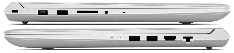 وقتی به لبه‌های دستگاه دقت کنیم، متوجه می‌شویم که Ideapad 700 از حداقل پورت‌ها برخوردار است. لبه‌ی سمت چپ، ورودی کابل شارژ دستگاه را روی خود جای‌ داده است. یک پورت USB 2.0 و شیار کارت‌خوان در کنار جک 3.5 میلی‌متری کمبوی صدا قرار  دارد. روی لبه‌ی دیگر، دو پورت USB 3.0 در کنار پورت HDMI و شبکه‌ی LAN گیگابیتی مشاهده می‌شود. توقع داشتیم USB TYPE-C را روی لبه‌های این دستگاه مشاهده کنیم؛ اما با کمی تفکر، متوجه می‌شویم این یک لپ‌تاپ مالتی‌مدیای میان‌رده است و نباید توقع زیادی از آن داشت. به‌جای آن می‌توان در نظر داشت که این لپ‌تاپ از حافظه‌ی M.2 NVMe SSD پشتیبانی می‌کند که برای لپ‌تاپی در این رده، ویژگی جالبی است. برای ارتباط بی‌سیم هم لپ‌تاپ Ideapad 700 از بلوتوث داخلی و شبکه‌ی Wi-Fi با استاندارد AC بهره گرفته که سریع‌ترین استاندارد برقراری ارتباط بی‌سیم از طریق Wi-Fi است.