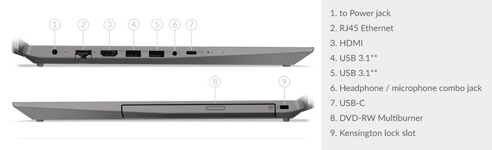 در نگاه اول باید به جنس بدنه این لپ‌تاپ بپردازیم. جنس بدنه تماما از پلاستیک فشرده ساخته شده و از کیفیت نسبتا بالایی برخوردار است. ظاهر این بدنه ساده و یکدست است و می تواند نظر شما را به خود جلب کند. شاید شرکت لنوو می توانست در این لپ تاپ از بدنه فلزی نیز استفاده کند اما باید در نظر بگیریم که این لپ تاپ، یک لپ تاپ نسبتا معمولی برای استفاده های خانگی است و نمی توان از آن انتظارات زیادی داشت و فلزی شدن بدنه منجر به گران‌تر شدن قیمت آن می شد. بدنه این لپ تاپ به دلیل فشردگی، مقاومت نسبتا خوبی در برابر فشار و خمش دارد. این لپ تاپ در حدود ۲۳ میلیمتر ضخامت و ۲.۲ کیلوگرم وزن دارد که برای این لپ تاپ در این بازه قیمت مقداری مطلوب به حساب می آید. یکی از ویژگی های بسیار جالب در این لپ تاپ، باز شدن صفحه نمایش تا ۱۸۰ درجه است که مقاومت لولا‌های به کار رفته در این لپ‌تاپ را نشان می دهد. نکته ای که در ظاهر این لپ تاپ به چشم می خورد، به کار بردن درایو نوری در این لپ‌تاپ است در صورتی که در بسیاری از لپ‌تاپ‌های امروزی درایو نوری به دلیل استفاده کمی که دارند، حذف شده و جای خود را به هاردهای ‌SSD داده اند که در این لپ‌تاپ این اتفاق نیوفتاده است. صفحه نمایش این لپ تاپ مات است که همین امر موجب شده انعکاس نور روی این صفحه به کمترین میزان خود برسد و چشم ها در هنگام کار با آن اذیت نشوند. طراحی کیبورد در این لپ تاپ به گونه ای است که دکمه‌ها از یکدیگر فاصله داشته که همین امر موجب می شود که سریع‌تر و راحت تر با این لپ تاپ تایپ کرد. یکی دیگر از نکات قابل توجه در این لپ تاپ، استفاده از USB-C است که یک پیشرفت در مورد این لپ‌تاپ محسوب می شود.