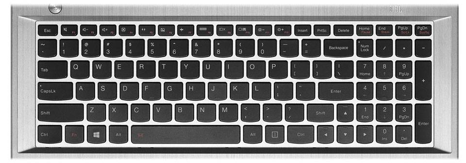 کیبورد این مدل هم مانند باقی محصولات شرکت لنوو از نوع AccuType است. در این طراحی انحصاری، کلیدها کاملا مربعی شکل نیستند و قسمت پایین آنها انحنای کوچکی دارد که به شکل نامحسوسی باعث بزرگتر شدن کلیدها شده است. به عقیده لنوو این نوع کیبورد برای تایپ کردن طولانی مدت راحتتر و خوشدستتر از کیبوردهای معمولی است. فضای نسبتا زیاد بین کلیدها هم به افزایش دقت تایپ کمک شایانی میکند. کیبورد این لپتاپ مجهز به نور پسزمینه است که با فشار همزمان کلیدهای Fn و Space میتوانید آن را روشن یا خاموش کنید.