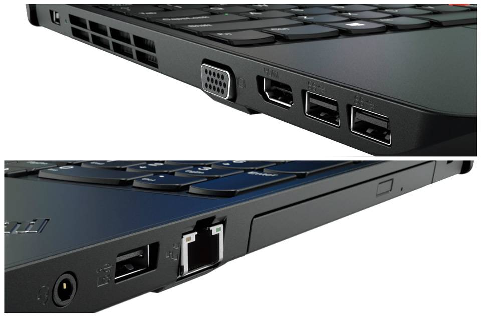 لنوو برای این مدل از لپتاپهای تینکپد کاملا سخاوت به خرج داده و از هیچ پورتی دریغ نکرده است. موردی که لنوو به طور تمام و کمال به آن پرداخته و در واقع مشکل بزرگ مدلهای قبلی را حل کرده این است که دیگر هیچ درگاهی را در پشت دستگاه قرار نداده است؛ چرا که برای دسترسی به پورتها لازم بود در لپتاپ را تا نیمه بست یا کل لپتاپ را چرخاند و حال که همهی پورتها در لبههای چپ و راست است این کارها لزومی ندارد و دسترسی به پورتها و درگاهها راحت است.