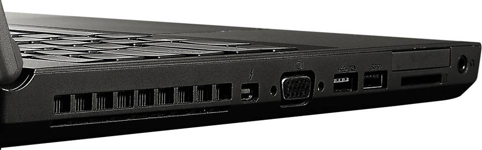 تینکپد T540p تمام درگاههای لپتاپهای امروزی را دارد؛ از خروجیهای تصویری VGA و mini DisplayPort گرفته تا درگاه شبکهی LAN، درگاه ۳.۵میلیمتری صدا، چهار درگاه USB و کارتخوان. شاید از درگاههای جدید و لوکس مثل USB Type-C و Thunderbolt خبری نباشد؛ ولی واقعا کمبودی هم احساس نخواهید کرد. در حقیقت لنوو خواسته بدون کمکردن کارایی T540p بهعنوان یک لپتاپ اداری، حداقل درگاهها را برای کاهش قیمت نهایی دستگاه در نظر بگیرد. درگاههای USB در سری T540p از نوع USB 2.0 و USB 3.0 هستند. سیستم Wi-Fi سری T540p هم از استاندارد ac پشتیبانی میکند و سرعت بیشتری در مقایسه با سیستم Wi-Fi با استاندارد b/g/n دارد.