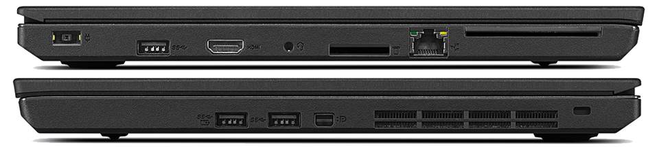 لنوو برای این مدل از لپتاپهای تینکپد کاملا سخاوت به خرج داده و از هیچ پورتی دریغ نکرده است. موردی که لنوو به طور تمام و کمال به آن پرداخته و در واقع مشکل بزرگ مدلهای قبلی را حل کرده این است که دیگر هیچ درگاهی را در پشت دستگاه قرار نداده است؛ چرا که برای دسترسی به پورتها لازم بود در لپتاپ را تا نیمه بست یا کل لپتاپ را چرخاند و حال که همهی پورتها در لبههای چپ و راست است این کارها لزومی ندارد و دسترسی به پورتها و درگاهها راحت است.