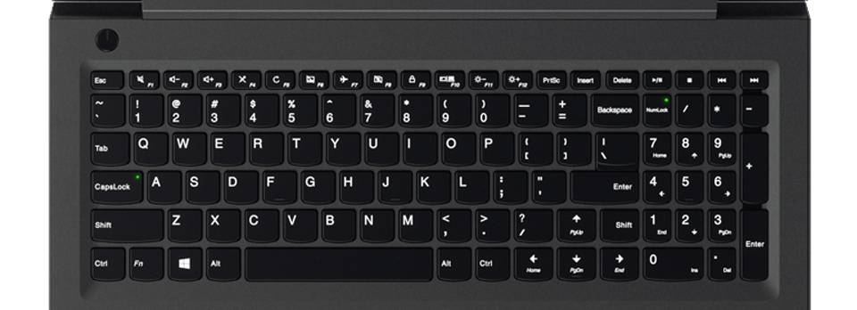 کیبورد کیفیت بسیار بالایی دارد و فضای کافی بین کلیدها، امکان اشتباهات تایپی را بهحداقل میرساند؛ البته خود کلیدها کمی کوچکتر از سایز استاندارد هستند، ولی این کاهش سایز به لنوو این امکان را داده است که نامپد کاملی را در سمت راست کیبورد قرار دهد. وظیفهی دوم هر کلید نیز در پایین آن نشان داده شده است. استراحتگاه مچ دست هم بسیار صاف و باکیفیت است.