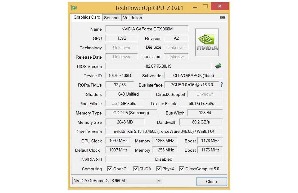 اما بیشترین نقطهقوت لپتاپ Y5070، پردازندهی گرافیکی قدرتمند آن است؛ یکی از پردازندههای گرافیکی جدید نسل هشتم کمپانی NVIDIA با چهار گیگابایت حافظهی اختصاصی که با کمکگرفتن از حافظهی رم دستگاه تا هشت گیگابایت قابلافزایش است. پردازندهی گرافیکی GeForce GTX 960M جزو تولیدات قوی و پرطرفدار شرکت NVIDIA است که در ماه مارس سال 2015 روانهی بازار شد. این پردازنده جزو سری دوم تولیدات این شرکت با فناوری Maxwell بود. اگرچه GTX 960M یک پردازندهی قدرتمند است، نسبت به مدلهای قدیمیتر خود انرژی کمتری استفاده میکند و این امر موجب افزایش طول شارژدهی باتری میشود. توجه داشته باشید که با وجود قدرت خوب این پردازندهی گرافیکی، نباید اجرای بازیهای جدید و سنگین را روی بالاترین سطح تنظیمات گرافیکی انتظار داشته باشید و برای دستیابی به تصاویر روان با نرخ فریم بالا، باید به کیفیت متوسط بسنده کنید.