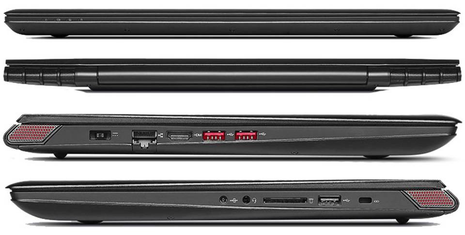 بهعنوان یک لپتاپ مخصوص بازی، لنوو Y5070 از تمامی پورتها و اتصالات برخوردار است که میتوان این موضوع را نکتهای مثبت برای آن دانست. در قسمت جلویی و عقبی دستگاه، هیچ پورت یا اتصالی وجود ندارد که به زیبایی دستگاه هم کمک فراوانی کرده است. در لبهی سمت راست، بهترتیب قفل Kensington، تک پورت USB 2.0، کارتخوان چهارکارهی دستگاه، جک 3.5 میلیمتری صدا و خروجی صدای SPDIF قرار گرفته است که شما را قادر میسازد لپتاپ خود را به سیستمهایی نظیر سینمای خانگی هم وصل کنید. در لبهی سمت چپ هم محل اتصال شارژر دستگاه، پورت شبکهی Ethernet با سرعت گیگابیتی، خروجی HDMI و دو پورت USB 3.0 قرار دارد. بلوتوث نسل چهارم و Wi-Fi هم برای اتصالات بیسیم این دستگاه در نظر گرفته شده است. متاسفانه درایو نوری دستگاه فدای طراحی و باریکی دستگاه شده و حذف شده است؛ البته در برخی از مدلهای وارداتی به کشور، یک عدد درایو نوری مجزا در بستهبندی موجود است.