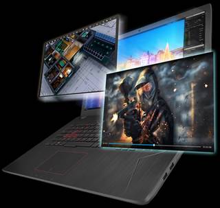 یکی از تفاوت‌های این لپ‌تاپ با لپ‌تاپ‌هایی که به طور خاص برای بازی ساخته شده‌اند در صفحه‌نمایش آن‌هاست. اکثر لپ‌تاپ‌های مخصوص بازی صفحه‌نمایش با پنل IPS دارند که زاویه‌ی دید وسیعی را در اختیار کاربر قرار می‌دهند. صفحه‌نمایش این لپ‌تاپ IPS نیست، اما به‌لطف فناوری منحصر‌به‌فرد ایسوس با نام «Wide-view»، زاویای دید در این صفحه‌نمایش محدود نیست و تا ۱۷۸ درجه وسعت دید خواهید داشت. با وجود دقت تصویر (۳۸۴۰x۲۱۶۰(UHD‌ این اطمینان را داشته باشید که وضوح و کیفیت تصویر خارق‌العاده است و اگر از زاویه‌ای غیر از عمود به صفحه‌نمایش نگاه کنید تغییری در رنگ‌ها و تصویر احساس نخواهید کرد. این صفحه‌نمایش به روکش مات مجهز است که معمولا در لپ‌تاپ‌های مالتی‌مدیا مرسوم بوده و برای استفاده‌های طولانی‌مدت مانند تماشای فیلم یا بازی‌کردن بسیار مناسب است. همچنین کارکردن در محیط‌های پرنور چشم را اذیت نمی‌کند. در مجموع صفحه‌نمایش این لپ‌تاپ کاملا قابل قبول است و برای کسانی که می‌خواهند کارهای مالتی‌مدیا انجام بدهند، فیلم ببینند یا بازی کنند رضایت‌بخش است. البته به کسانی که برای ادیت فیلم و عکس می‌خواهند لپ‌تاپ بخرند توصیه می‌کنیم به سراغ مدل‌هایی بروند که صفحه‌نمایش براق دارند؛ چرا که روکش مات، شفافیت و زنده‌بودن رنگ‌ها را تا حد زیادی کاهش می‌دهد.