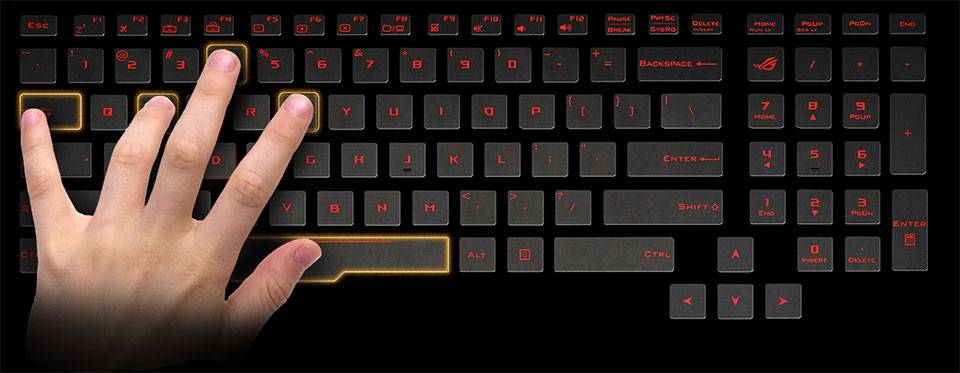 ایسوس برای تبلیغات G752 از اصطلاحی به نام «کیبورد با قابلیت Anti-Ghosting» استفاده می‌کند. اما این فناوری «ضد-سایه‌اندازی» یا همان Anti-Ghosting دقیقا چیست؟ تصور کنید در حال انجام بازی هستید و بنا به دلایلی مجبورید که چند کلید را به صورت هم‌زمان فشار داده و این کار را چند مرتبه پشت هم انجام دهید. با کیبوردهای جزیره‌ای معمول در لپ‌تاپ‌ها که چندان هم مناسب بازی نیستند، معمولا این وسط‌ها، تعدادی از کلیدها یا مجموعه‌ای از دستورات شناسایی نمی‌شوند. به این مورد در اصطلاح «سایه‌اندازی» (Ghosting) می‌گویند. ایسوس برای برطرف‌کردن این موضوع، امکانی را با عنوان Anti-Ghosting به کیبورد G752 اضافه کرده است که هم‌زمان امکان شناسایی ۳۰ کلید را به آن می‌دهد. به علاوه، LEDهای مربوط به نور پس‌زمینه‌ی قرمز کیبورد، دقیقا در وسط کلیدها تعبیه شده‌اند تا از هدررفتن نور در فضای اطراف کلیدها جلوگیری کنند و ظاهر تمیزتری داشته باشند.