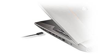 تمام درگاهها و اتصالات هم در دو طرف دستگاه تعبیه شدهاند تا لبههای جلویی و پشتی، کاملا تمیز و یک دست بمانند. ایسوس هر درگاهی را که ممکن است برای بازیکنندهها مهم باشد، برای G752 در نظر گرفته است؛ از چهار درگاه USB 3.0 گرفته تا انواع و اقسام خروجیهای تصویری و درگاه شبکه؛ حتی یک درگاه USB Type-C وجود دارد که میتواند بهعنوان یک درگاه تاندربولت ۳ هم استفاده شود. درایو نوری هم خوشبختانه حذف نشده است. باید واقعا آدم ریزبین و ایرادگیری باشید که بتوانید به تنوع درگاههای مدل G752 ایرادی وارد کنید.
