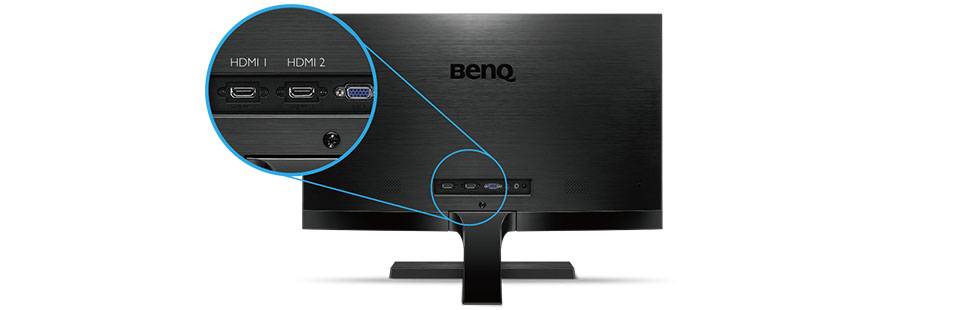 در پنل پشتی مانیتور درگاه‌های ارتباطی آن به چشم می‌خورد. این درگاه‌ها شامل دو درگاه‌ HDMI و یک درگاه VGA است که می‌توانند کاربر را برای نمایش تصاویر با رزولوشن بالا یاری کنند. قابل ذکر است که برای داشتن بهترین رزولوشن در این مامیتور بهتر از درگاه HDMI در آن بهره برده شود. حداکثر رزولوشن قابل ارائه توسط این مانیتور شرکت بنکیو برابر با مقدار 1920 × 1080 است که اصطلاحا به آن Full-HD گفته می‌شود. تصاویر در این رزولوشن با جزئیات بسیار بالایی قابل نمایش هستند که می‌تواند برای طراحان گرافیک بسیار با اهمیت باشد.
