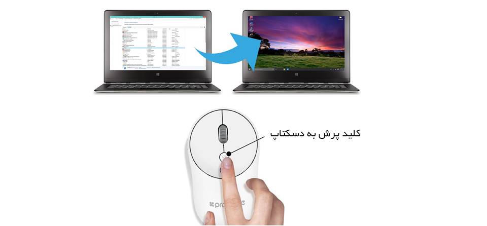 • دارای کلید پرش سریع به محیط دسکتاپ (Desktop)