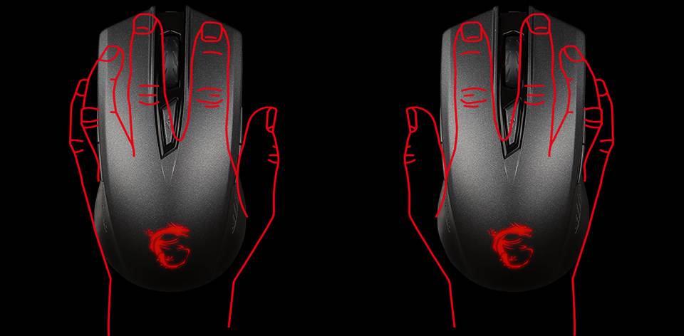 ماوس Clutch GM40 مانند ماوس Clutch GM60 برای استفاده با هر دو دست ساخته شده است. البته Clutch GM40 ارزانتر است و کیفیت ساخت آن را میتوانید از پلاستیکهای کناری آن بهخوبی متوجه شوید. البته قسمت فوقانی این ماوس بهخوبی طراحی و ساختهشده است و نشان از یک ماوس گیمینگ حرفهای دارد. در هرکدام از طرفین این ماوس و بالای گریپهای ماوس، کلیدهای کناری و جود دارند که برای استفاده یکسان افراد راستدست و چپدست ساخته شدهاند. برای اینکه کاربر کلید اشتباه را فشار ندهد در قسمت زیرین این ماوس سویچی وجود دارد که با استفاده از آن میتوان کلیدهای هرکدام از طرفین یا حتی تمامی کلیدهای کناری ماوس را غیرفعال کرد. یکی از نکاتی که باعث میشود ماوس Clutch GM40 را بهعنوان ماوسی حرفهای در نظر نگیریم، نبود نورهای RGB است. دراین ماوس فقط نوری به رنگ قرمز وجود دارد که لوگوی اژدهای ام اس آی و نوارهای رنگی کناری ماوس را تغییر میدهد.