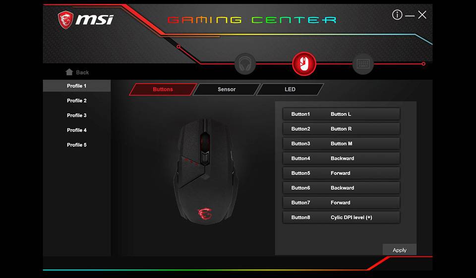 قطعاً میتوان گفت که ماوس «GM60» شرکت «ام اس آی» (MSI) محصولی ارزانقیمت نیست. خوشبختانه در این محصول ویژگیهایی گنجانده شده است تا ارزش خرید GM60 را بهاندازه قیمت آن یا حتی فراتر از آن بالا رود. نرمافزار «Gaming Center» رابط اصلی برای کنترل عملکرد ماوس است. این نرمافزار تقریباً ابتدایی است اما قادر است بیشتر ویژگیهای اصلی که شما از ماوس انتظار دارید را برآورده کند. با استفاده از صفحه اصلی این نرمافزار، کاربر قادر خواهد بود که نورهای LED را بهسرعت خاموش یا روشن کنید و تنظیمات را بهطور کامل دستخوش تغییر کنید. با کلیک کردن روی عکس ماوس، در این نرمافزار میتوانید کلیدهای ماوس را انتخاب و شخصیسازی کنید. با استفاده از این نرمافزار ضبط کردن کلیدهای ماکرو بسیار ساده است.