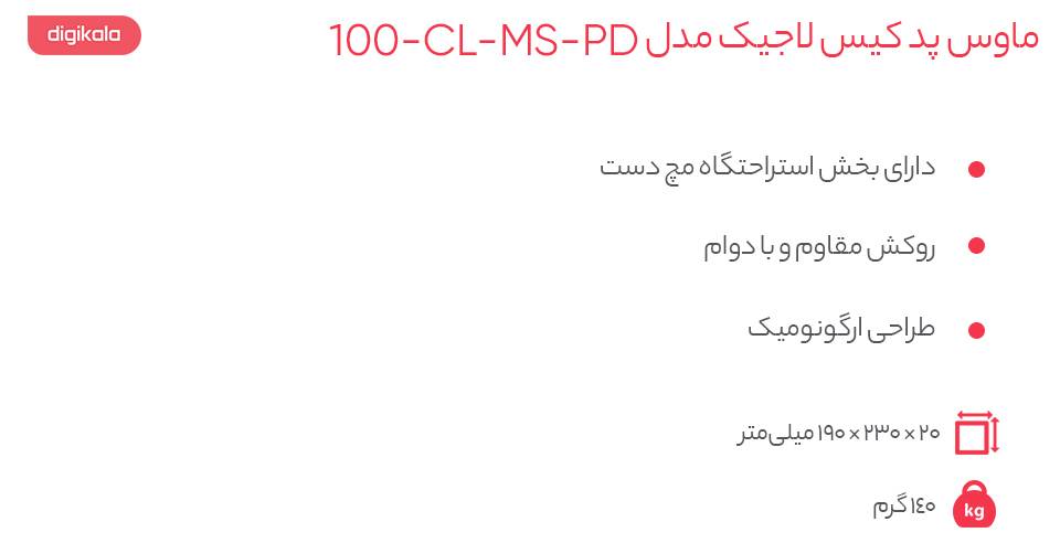 شاید شما هم در هنگام کار کردن با ماوس با این مشکل مواجه شده باشید که روی میز یا هر سطحی نمیشود به راحتی با ماوس کار کرد، زیرا بدون ماوس پد کار کردن با بهترین ماوسها هم خیلی سخت است چه برسد به یک ماوس معمولی. با استفاده از این ماوس پد شما میتوانید به راحتی از ماوس خود استفاده کنید و حرکتی روان و دقیق داشته باشید. یکی از ماوسپدهای ساده و کاربردی بازار توسط (Case Logic) «کیس لاجیک» تحت عنوان مدل (CL-MS-PD-100) تولید شده است. این محصول دارای استراحتگاه مچ دست است یعنی یک بالشتک در قسمت پایین ماوس پد قرار دارد که مچ دست بر روی آن قرار میگیرد. مهمترین عامل درد مچ در کار با ماوس حالت شکسته و زاویه مچ دست است که در بلندمدت حتی میتواند باعث دردهای مزمن و ماندگار در مچ دست شود. اما اگر از این ماوس پد استفاده کنید مچ دست شما در وضعیت بهتری قرار میگیرد و ساعد و کف دست تقریبا به حالت افقی و بدون شکستی قرار میگیرد که این مساله در سلامتی مفاصل و خستگی کمتر مچ دست نقش مهمی دارد. قسمت کف این ماوس پد هم به صورت لاستیکی ساخته شده تا ماوس پد به هیچ عنوان سر نخورد و در هر شرایطی سر جای خود ثابت بماند. ابعاد این ماوس پد 19 × 23 سانتیمتر است و برای استفاده با ماوسهایی که ابعاد متوسط و کوچک دارند، مناسب است.