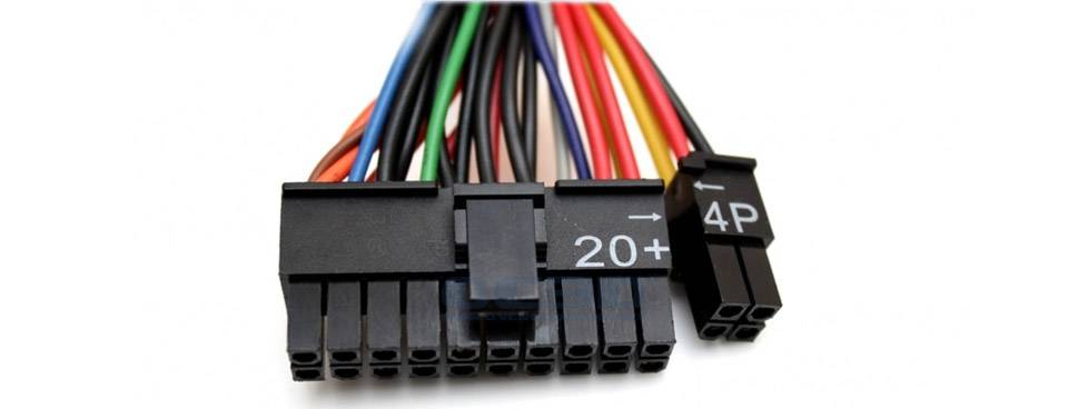 - کانکتور مادربرد: کانکتورهای مادربرد به سه گروه ۲۰پین، ۲۴پین و ۴+۲۰پین تقسیم میشوند که ممکن است یک پاور یکی از این موارد را داشته باشد. همانطور که از نام کانکتور برمیآید، وظیفهی آن تامین انرژی مورد نیاز مادربرد و قطعاتی است که بهصورت غیرمستقیم انرژی خود را تامین میکنند. معمولا مادربردهای قدیمی از کانکتورهای ۲۰پین استفاده میکنند و مانیتورهای جدید از طریق کانکتور ۲۴پین برای تامین انرژی بهره میبرند. بسیاری از شرکتهای تولیدکنندهی پاور برای آنکه بتوانند به خوبی نیاز همهی کاربران را پوشش دهند از کانکتور ۴+۲۰پین بهره میبرند. این کانکتور درواقع دارای ۲۰ پین است که ۴ پین به صورت جداگانه به آن متصل میشود.