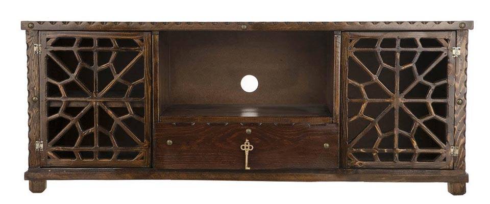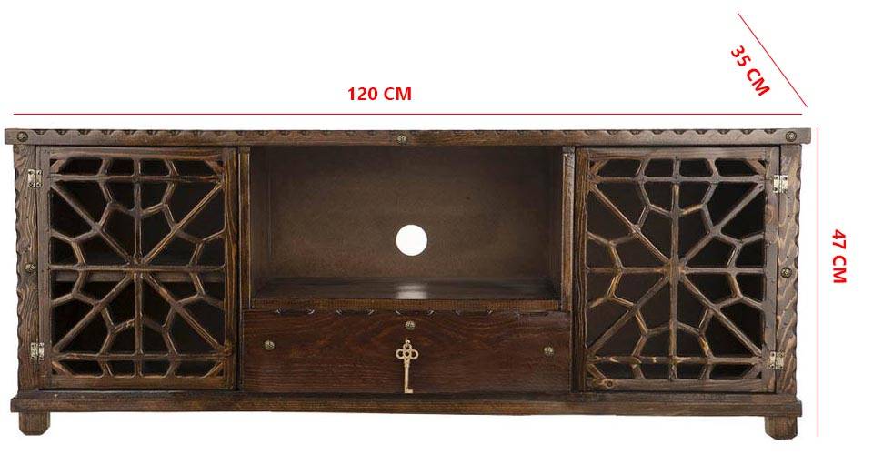 میزتلویزیون 001 محصولی با طراحی بسیار متفاوت و حرفه‌ای است. این میز تلویزیون را می‌توان یک طراحی هنری و کاربردی کردن آن برای داشتن دکوری متفاوت‌ دانست. درهایی با طراح شبکه‌ای که همیشه چنین طراحی در آثار و اماکن قدیمی دیده می‌شد ولی اینبار طراح خوش ذوق این محصول باعث شده که بتوانیم در محیط مدرن خانه‌ی خود یک گنجینه‌ی نوستالژیک را تجربه کنیم. این میز تلویزیون با طراحی زیبا و رنگ قهوه‌ای سوخته‌ی خود گرما بخش محیط اطراف خواهد بود. شاید به نظر برسد که این میز تلویزیون تنها یک محصول زیبا و لوکس است ولی چنین تصوری کم لطفی درباره‌ی آن خواهد بود چرا که این محصول فضای زیادی را برای قرار گرفتن تلویزیون‌هایی تا سایز 50 اینچ می‌توان روی آن حساب باز کرد. همچنین وجود یک بخش برای قرارگیری دستگاه پخش خانگی، یک کشو برای قرار دادن لوازم جانبی تلوزیون مانند ریموت، عینک سه بعدی و.... و دو بخش برای قرار دادن دکوری‌های تزئینی باعث شده که این بتوان میز تلویزیون 001 را یک محصول کاملا کاربردی دانست. استفاده از چوب در سخت این محصول باعث شده که نگرانی بابت آسیب دیدن این محصول در برابر صدمات وجود نداشته باشد. پایه‌های این میز کاملا پایدار بوده که می‌تواند از تلوزیون در برابر لرزش‌ها محافظت کند. اگر قصد تهیه‌ی یک میز تلویزیون حرفه‌ای با طراحی متفاوت را دارید، میز تلویزیون کد 001 محصول مناسبی برای شما خواهد بود.