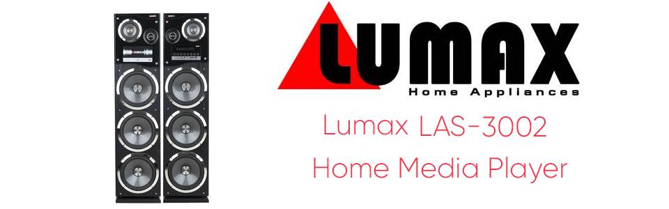 مدل «LAS-3002» محصولی از برند لومکس است که با صدای خروجی پرقدرتش کاربران را شگفت‌زده می‌کند. این سیستم صوتی از دو یونیت قدرتمند چوبی ساخته شده که ارتفاع هر کدام 125 سانتی‌متر است و هر کدام از این یونیت‌ها، اسپیکرهای اکتیو 10اینچی دارند. روی اسپیکر اصلی این سیستم صوتی، دکمه‌ها و ورودی‌ها قرار گرفته‌اند که دکمه‌ها به‌صورت لمسی عمل می‌کنند. این ویژگی باعث می‌شود با راحتی بیشتری از این سیستم استفاده کنید. طراحی جذاب نمایشگر بزرگ و نورهای ال‌ای‌دی آبی‌رنگ دکمه‌های لمسی و همچنین ارتفاع بلند هر یونیت باعث می‌شود این محصول در دکوراسیون داخلی منزلتان نقش بسیار مهمی ایفا کند. این سیستم صوتی، دارای ورودی USB است که برای کاربران امکان اتصال فلش‌مموری را فراهم می‌کند؛ همچنین می‌توانید کارت حافظه‌ی SD خود را به این دستگاه متصل کنید. برای اینکه بتوانید میکروفون خود را به دستگاه متصل کنید، دو عدد ورودی میکروفون در نظر گرفته شده است؛ همچنین همراه این اسپیکر یک عدد میکروفون ارائه می‌شود تا بتوانید در صورت نیاز صدای خود را از اسپیکرها پخش کنید. این مدل از اتصال بی‌سیم بلوتوث بهره می‌برد. می‌توانید با استفاده از این قابلیت، فایل‌های صوتی خود را از موبایل یا پخش‌کننده‌های موسیقی دیگر بدون اتصال کابل به این اسپیکرها منتقل کنید. با توجه به اینکه در حال حاضر اکثر تلویزیون‌های جدید، خروجی صدا را فقط به صورت اپتیکال دارند، ورودی Optical این سیستم صوتی بسیار کاربردی است. با مقایسه‌ی این مدل با سایر محصولات صوتی حرفه‌ای، متوجه قیمت مقرون‌به‌صرفه‌ی آن خواهید شد.
