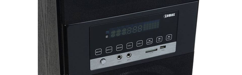 مدل «LAS-3006» محصولی از برند لومکس است که با صدای خروجی پرقدرتش کاربران را شگفتزده میکند. این سیستم صوتی از دو یونیت قدرتمند چوبی ساخته شده که ارتفاع هرکدام 125 سانتیمتر است و هرکدام از این یونیتها، اسپیکرهای اکتیو 10اینچی دارند. روی اسپیکر اصلی این سیستم صوتی، دکمهها و ورودیها قرار گرفتهاند که دکمهها بهصورت لمسی عمل میکنند. این ویژگی باعث میشود با راحتی بیشتری از این سیستم استفاده کنید. طراحی جذاب نمایشگر بزرگ و نورهای الایدی آبیرنگ دکمههای لمسی و همچنین ارتفاع بلند هر یونیت باعث میشود این محصول در دکوراسیون داخلی منزلتان نقش بسیار مهمی ایفا کند. این سیستم صوتی، دارای ورودی USB است که برای کاربران امکان اتصال فلشمموری را فراهم میکند؛ همچنین میتوانید کارت حافظهی SD خود را به این دستگاه متصل کنید. برای اینکه بتوانید میکروفون خود را به دستگاه متصل کنید، دو عدد ورودی میکروفون در نظر گرفته شده است؛ همچنین همراه این اسپیکر یک عدد میکروفون ارائه میشود تا بتوانید در صورت نیاز صدای خود را از اسپیکرها پخش کنید. این مدل از اتصال بیسیم بلوتوث بهره میبرد. میتوانید با استفاده از این قابلیت، فایلهای صوتی خود را از موبایل یا پخشکنندههای موسیقی دیگر بدون اتصال کابل به این اسپیکرها منتقل کنید. با توجه به اینکه در حال حاضر اکثر تلویزیونهای جدید، خروجی صدا را فقط به صورت اپتیکال دارند، ورودی Optical این سیستم صوتی بسیار کاربردی است. با مقایسهی این مدل با سایر محصولات صوتی حرفهای، متوجه قیمت مقرونبهصرفهی آن خواهید شد.