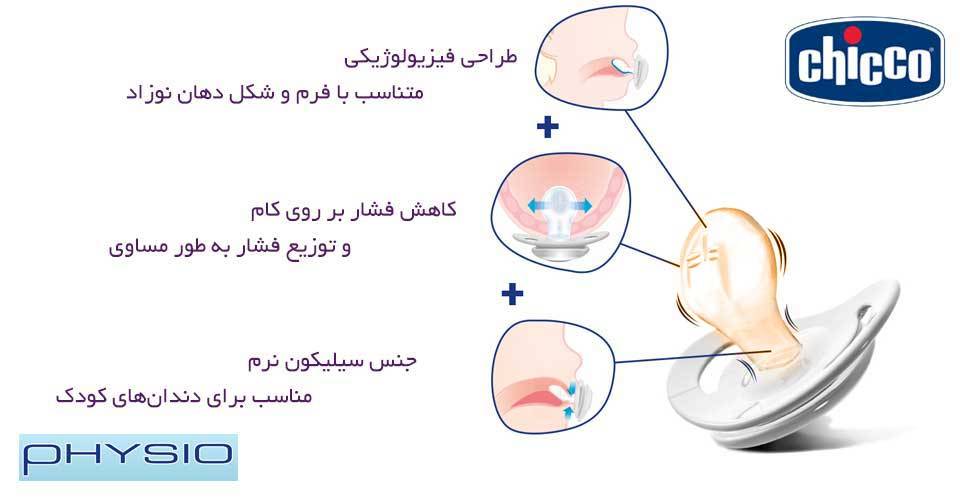 محصولی که در اینجا به بررسی مشخصه‌ها و ویژگی‌های آن می‌پردازیم یکی از پستانک‌های سری فیزیو برند معتبر «چیکو» است. این محصول از 4 ماهگی به بعد نوزاد قابل استفاده است. این پستانک فاقد درپوش بوده و برای حمل و نگهداری بهداشتی آن بایستی برای آن یک قاب یا محفظه نگهدارنده مجزا تهیه کنید. بسته‌بندی این محصول شامل دو عدد پستانک هم‌سایز است.