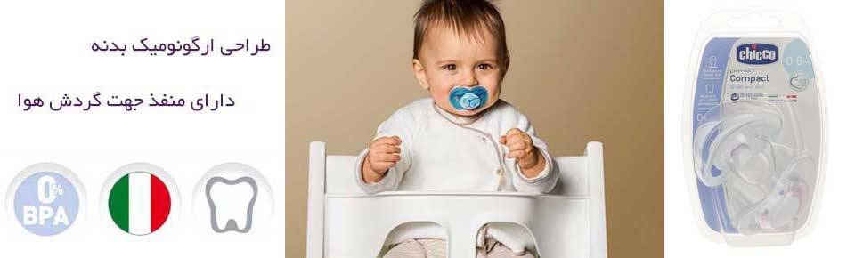 محصولی که در اینجا به بررسی مشخصهها و ویژگیهای آن میپردازیم یکی از پستانکهای سری فیزیو برند معتبر «چیکو» است. این محصول از با سایز 1 از بدو تولد نوزاد تا 6 ماهگی قابل استفاده است. این پستانک فاقد درپوش بوده و برای حمل و نگهداری بهداشتی آن بایستی برای آن یک قاب یا محفظه نگهدارنده مجزا تهیه کنید. بستهبندی این محصول شامل دو عدد پستانک همسایز است.