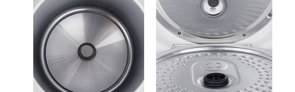 سمت داخلی درپوش، روکشی دارد که فلزی و قابل جداشدن است. اگر بخار یا کف برنج روی این قسمت بنشیند، میتوان آن را جدا کرد و بهآسانی شست. حتی روی آن حکشده که درپوش، پس از استفاده از دستگاه تمیز شود.