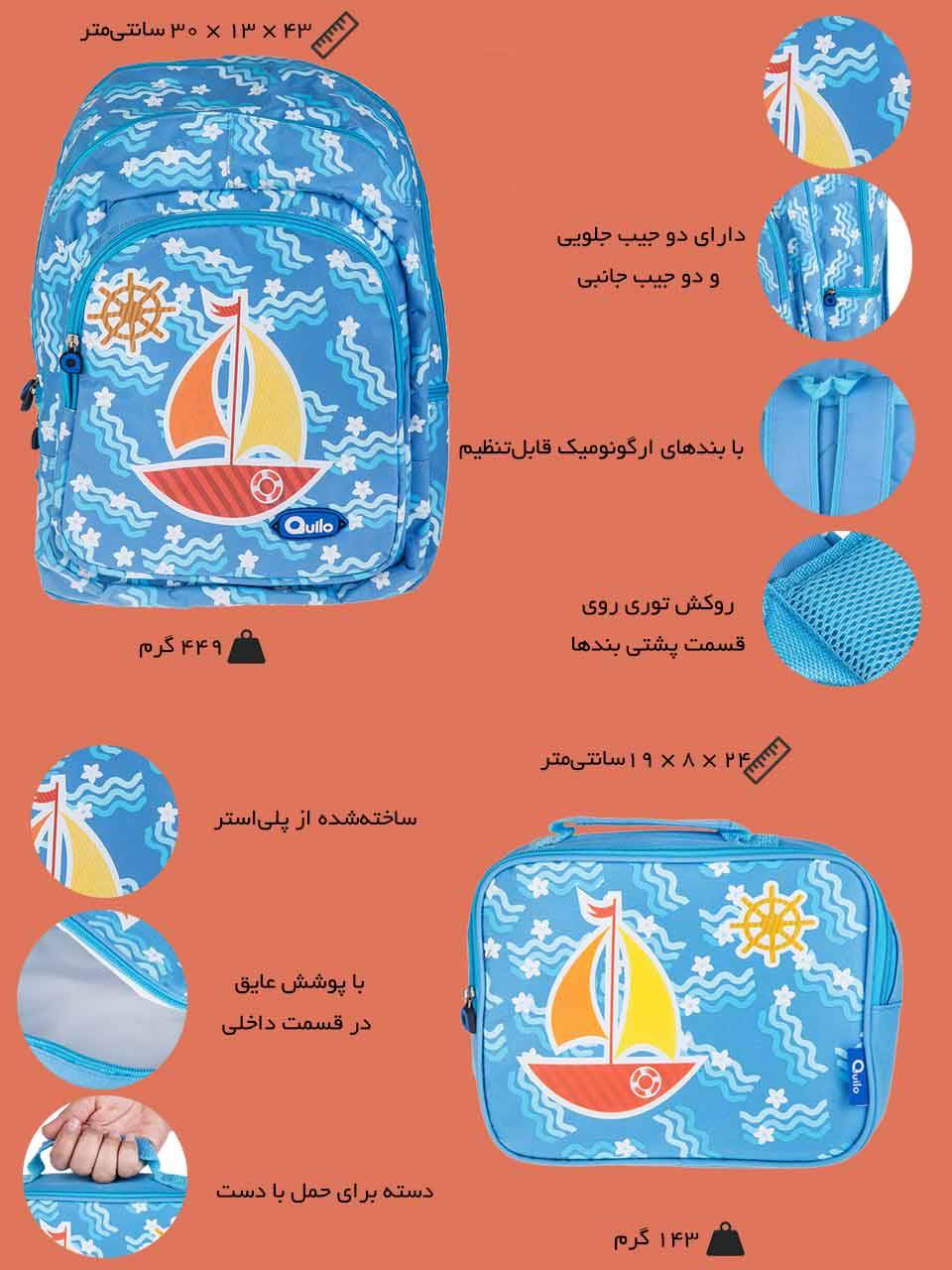 پک کولهپشتی کوییلو طرح قایق مجموعهی کاملی است برای بردن هر آنچه کودک شما در مدرسه و مهدکودک نیاز دارد. کیفهای باکیفیت و بادوام این مجموعه میتوانند تمامی کتاب و دفترها، لوازمالتحریر، کفش و حتی غذای کودک را در خود نگهدارند. با این پک دیگر پدر و مادر به جستوجوهای طولانیمدت برای تهیهی کیفهایی کاربردی و شبیه به هم نیازی نخواهند داشت.