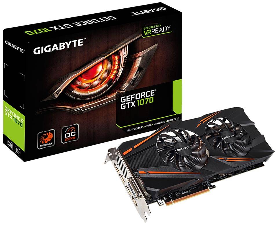 اولین چیزی که در یک کارت گرافیک باید به آن توجه کرد مدل واحد پردازشگر گرافیکی یا همان GPU است. با توجه به مدل GPU می‌توان به راحتی رده کاربری کارت گرافیک را مشخص کرد و تصمیم گرفت که آیا برای نوع کاربری ما مناسب است یا خیر. این محصول گیگابایت مجهز به پردازشگر گرافیکی GeForce GTX 1070 است که از قدرت پردازشی بسیار بالایی برخوردار بوده و ازجمله ارزشمندترین کارت‌های گرافیک به شمار می‌رود. چراکه از طرفی قیمتی به مراتب پایین‌تر از مدل 1080 دارد و از نظر کارایی هم بسیار بهتر از مدل 1060 است. این کارت به راحتی از پس اجرای بازی‌های سنگین برمی‌آید و حتی برای اجرای بازی‌ها با کیفیت 4K هم می‌توان روی آن حساب باز کرد. در نظر داشته باشید که این نسل از کارت‌های گرافیک بر پایه تکنولوژی NVIDIA Pascal تولید شده‌اند و حدودا سه برابر قدرتمندتر از کارت‌های هم رده نسل قبل خود هستند. کلاک هسته این GPU در شرایط مختلف متفاوت است و در حالت OC Mode به صورت پایه 1582 و به صورت Boost برابر با 1771 مگاهرتز است و این دو عدد برای حالت Gaming Mode برابر با 1556 و 1746 مگاهرتز است. این دو عدد برای نسخه مرجع این GPU برابر با 1506 و 1683 مگاهرتز است و مشخص است که این کارت گرافیک کمی توسط سازنده اورکلاک شده و کارایی آن بیشتر از مدل مرجع خواهد بود. تعداد هسته‌های CUDA هم 1920 است که تعداد زیادی برای یک کارت گرافیک دسکتاپ محسوب می‌شود.