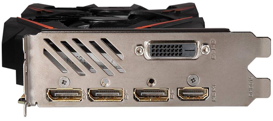 این کارت گرافیک رده بالا دارای پنج پورت خروجی است که پورت‌های نسل جدید سهم بیشتری از این تعداد را دارند. به ترتیبی که در این محصول شاهد سه پورت DisplayPort 1.4، یک HDMI 2.0b و یک Dual-Link DVI-D هستیم. می‌توان همزمان تا 4 مانیتور را به این کارت گرافیک متصل کرد و در نهایت به وضوح تصویر 7680x4320 پیکسل رسید. از آنجایی که پورت HDMI از نوع HDMI 2.0 است قابلیت ارائه تصویر تا رزولوشن 4096x2160 را دارد و از محتوای 4K در حالت 60 Hz پشتیبانی می‌کند. این کارت گرافیک از قابلیت SLI هم پشتیبانی می‌کند و روی آن دو رابط SLI وجود دارد. برای برق‌رسانی هم یک کانکتور 8 پین در این محصول تعبیه شده است. حداقل پاور مورد نیاز برای عملکرد مناسب آن هم 500 وات است.