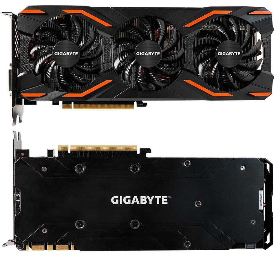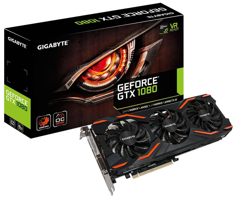 کارت گرافیک «GV-N1080WF3OC-8GD» محصول برند «گیگابایت» (GIGABYTE) است. در این کارت گرافیک از پردازندهی «GeForce GTX 1080» شرکت «ان ویدیا» (NVIDIA) استفاده شده است. فرکانس پردازندهی گرافیکی در حالت حداکثری به 1797 مگاهرتز میرسد و این فرکانس در حالت Boost اورکلاک به دست میآید. 8 گیگابایت حافظهی گرافیکی GDDR5X روی این کارت گرافیک نصب شده و فرکانس حافظه 10010 مگاهرتز است. در قسمت پشتی کارت گرافیک GV-N1080WF3OC-8GD یک صفحهی فلزی در نظر گرفته شده که هم استحکام کارت گرافیک را تضمین میکند و هم با دفع بهینهی حرارت از قسمت پشتی، به خنکسازی کارت کمک میکند. سیستم خنککنندهی این کارت گرافیک گیگابایت WINDFORCE 3X نام دارد و در آن از سه عدد فن برای خنکسازی استفاده شده است. فنها در ترکیب با رادیاتور آلومینیومی و لولههای خنککنندهی مسی به دفع حرارت کارت گرافیکی کمک میکنند. برای لولههای مسی از نوع کامپوزیتی این لولهها استفاده شده و تماس مستقیم این لولهها با هستهی گرافیکی، منجر به خنکسازی سریع GPU میشود. سه خروجی DP، یک خروجی HDMI و یک خروجی DVI-D در پشت کارت گرافیک GV-N1080WF3OC-8GD وجود دارد که با استفاده از آنها میتوان تا 4 مانیتور را به کارت گرافیک وصل کرد و به حداکثر رزولوشن 8K دست یافت. برای تامین برق موردنیاز این کارت گرافیک به یک منبع تغذیهی حداقل 500 وات نیاز خواهید داشت.