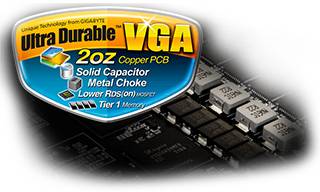 از آنجایی که این کارت گرافیک نسخه اورکلاک شده است و قابلیت اورکلاک شدن بیشتر را هم دارد، گیگابایت در طراحی آن از 2+8 فاز توان رسان استفاده کرده تا توان رسانی به ماسفتها کاملا پایدار و یکنواخت باشد تا ماسفتها در دمای پایینتری کار کنند و راندمان و البته طول عمر بیشتری داشته باشند. تعداد این فازها به این دلیل به صورت 2+8 اعلام شده که در مجموع 10 فاز روی برد این کارت گرافیک وجود دارد که 8 فاز مسئول توان رسانی به GPU هستند و 2 فاز دیگر این کار را برای رم انجام میدهند. مجموعه فازها، خازنها و چوکهای به کار رفته در این کارت گرافیک از کیفیت بسیار بالایی برخوردار هستند و راندمان و پایداری بالایی را نتیجه میدهند.