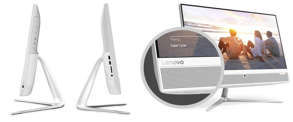 کامپیوتر All in One لنوو مدل A510 - D در دو رنگ مشکی و سفید روانه بازار شده است. همراه این محصول یک ست ماوس و کیبورد ارائه میشود که برای استفادههای روزمره میتوانند کاربردی باشند و نیاز کاربر را از تهیه ماوس و کیبورد رفع کنند. سایز صفحهنمایش در این کامپیوتر 21.5 اینچ واز نوع LED و شفاف است. صفحهنمایش ارائه شده برای این محصول از نوع لمسی بوده و میتواند چند فرمان لمسی را همزمان دریافت کند. دقت صفحهنمایش در این محصول برابر با 1080 × 1920 پیکسل است. در قسمت پاینی صفحهنمایش این کامپیوتر بلندگوهای کامپیوتر به چشم میخورند. در قسمت میانی این بلندگوها یک وبکم برای برقراری تماسهای تصویری وجود دارد که میتواند با کیفیت 720p اقدام به تصویر برداری کند. جنسبدنهی کامپیوتر A510 - D ازپلاستیک و جنس پایههای آن از فلز است که به راحتی میتوانند مقاومت خوبی در برابر صدمات داشته باشند. به کمک طراحی خوب پایهها کاربر قادر خواهد بود زاویهی عمودی A510 - D را برای داشتن تصویر و زاویه دید مناسب تغییر دهد.