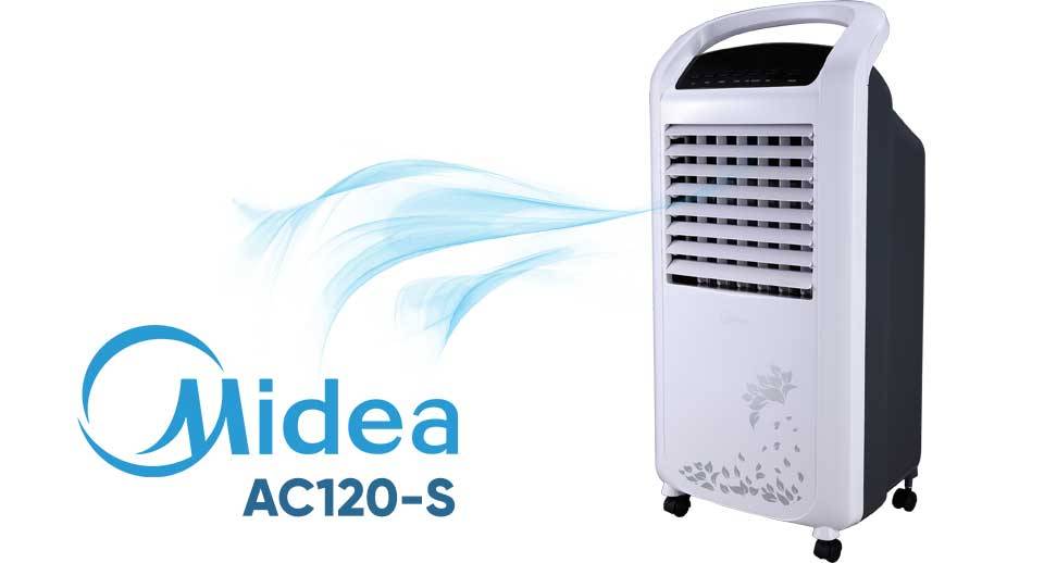 کولر «مایدیا» مدل «AC120-S» از دسته‌ی کولرهای آبی ساخت این شرکت است. این محصول با طراحی و کارکرد خود، از نوع کولرهای آبی پرتابل یا قابل حمل محسوب می‌شود. این کولرآبی کارکردی چندمنظوره دارد و می‌تواند به‌عنوان تصفیه هوا، فن و مرطوب‌کننده مورد استفاده قرار بگیرد. پنل تنظیمات دستگاه در قسمت بالای کولرآبی قرار گرفته است و امکان اعمال تنظیمات مختلف را به کاربر می‌دهد. از طریق این پنل امکان تنظیم سرعت کارکرد کولر در سه حالت وجود دارد. کاربر می‌تواند با توجه به کارکرد مدنظر خود، عملکرد دستگاه را در یکی از حالت‌های نرمال، طبیعی و بی‌صدا تنظیم کند. وجود یک ریموت‌کنترل به‌همراه این دستگاه، به بهبود عملکرد و راحتی کار با آن افزوده است. این دستگاه مجهز به سیستم هشداردهنده‌ است که کاربر را از اتمام آب کولر با خبر می‌کند. همچنین وجود تایمر هفت ساعته و پوشش شعاع وسیع برای خنک‌سازی از دیگر خصوصیات این مدل است. مایدیا یک شرکت بزرگ و بین‌المللی است که با تولید محصولات باکیفیت توانسته جایگاه مناسبی در بازار لوازم خانگی برای خود دست و پا کند.