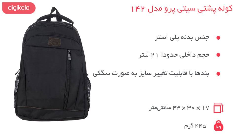 مشخصات کلی کوله پشتی سیتی پرو مدل 142